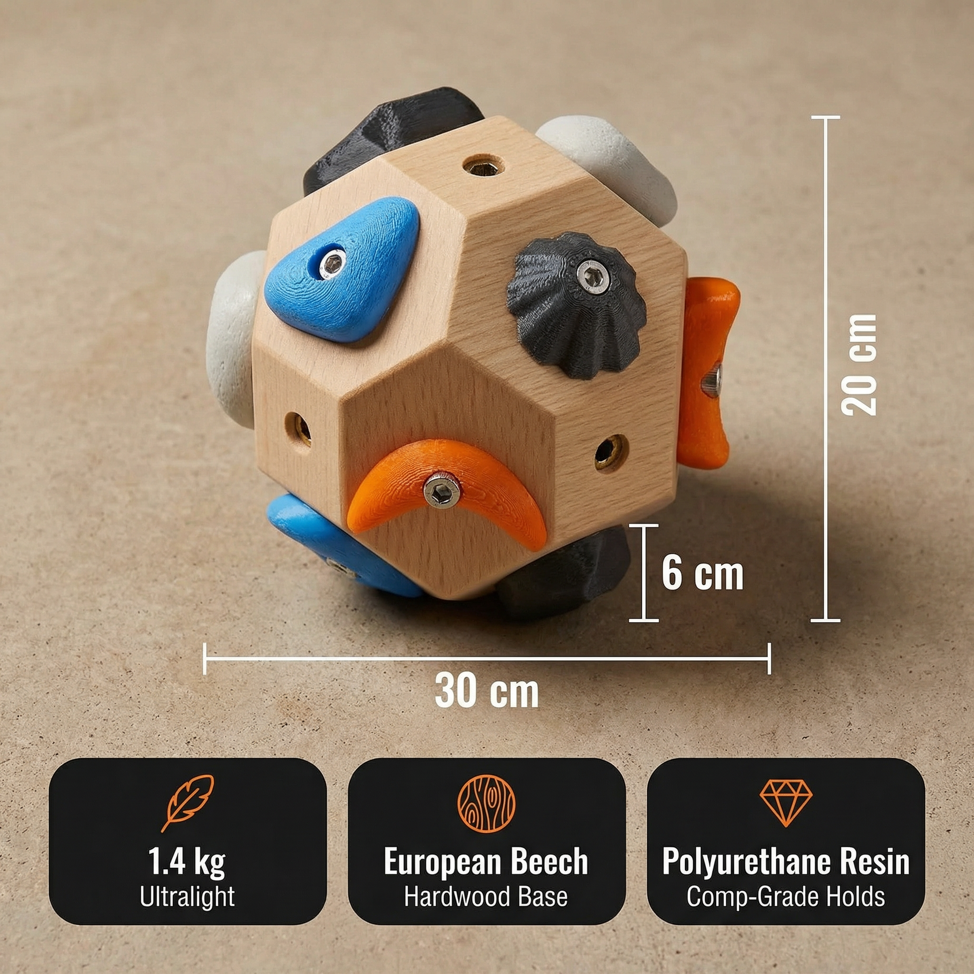 12 hand-poured resin holds. One solid hardwood block. Infinite routes.